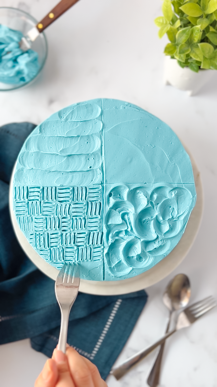 But we’re assuming you probably own, like, at least one spoon and one fork, right? Great! Because with just those two humble utensils there are at least four dynamic patterns you can create to level up any old plain frosted bake. Who knew the cutlery drawer was so versatile? Also reminder to go tidy that thing up, because if it’s anything like ours, it gets chaotic in there FAST. Where were we? Oh yeah, playing with buttercream and creating cute textures! All you'll need is a spoon and fork! Yes, seriously that’s it. Well, and whatever frosted cake type thing you’re decorating, obviously. This isn’t a trick, we swear! Let’s go.