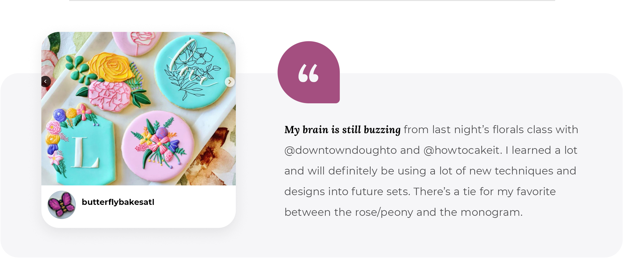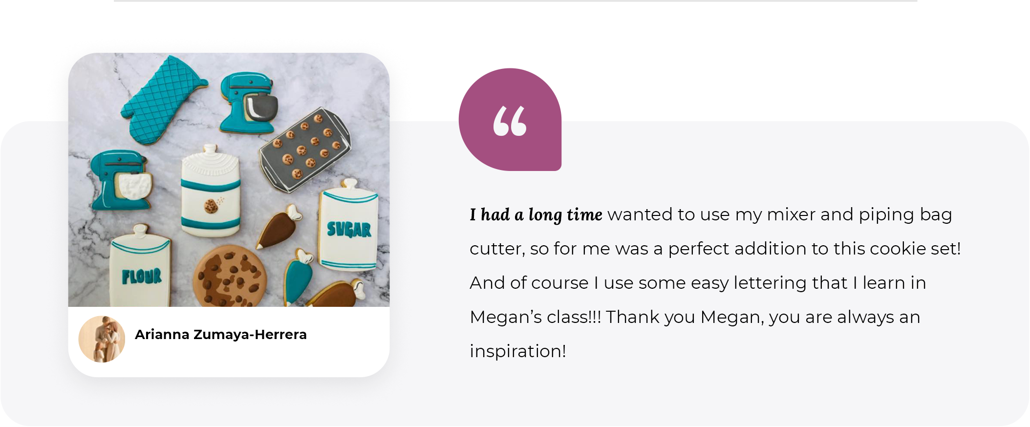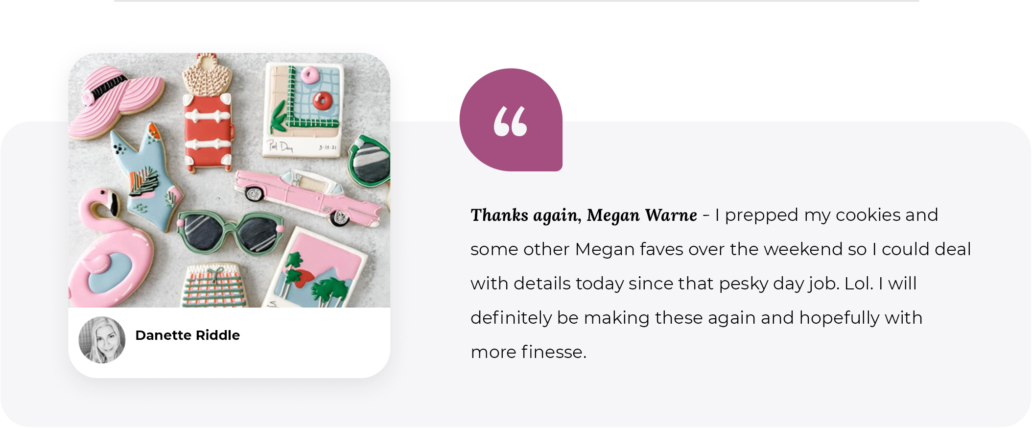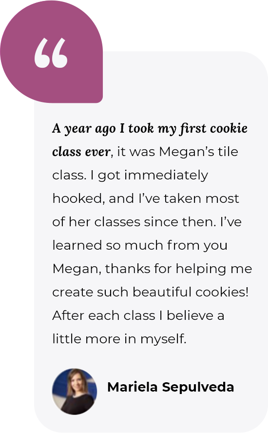 You'll get access to some of Megan's Cookie Decorating Masterclass videos to help you prep for class!